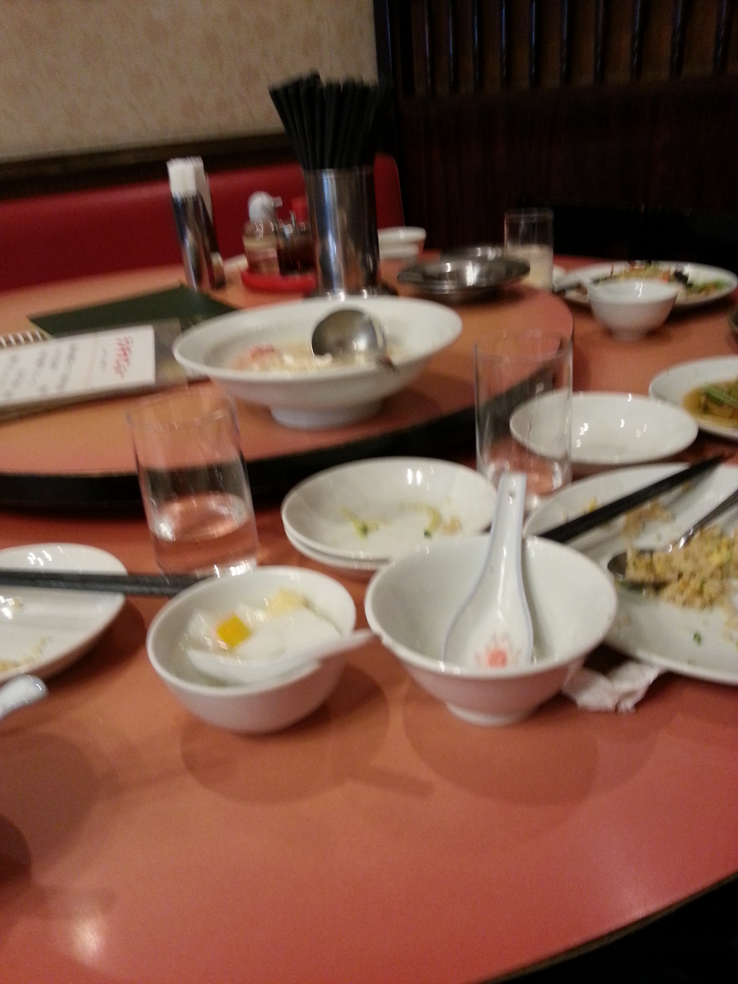 We had a great lunch yesterday in Yokohama, started with roasted pork, then seafood fried rice and sharkfin and crab soup, ending with almond gel stuff that was a great finisher. They certainly don’t use sugar like Americans, things are slightly sweet, not excessive.