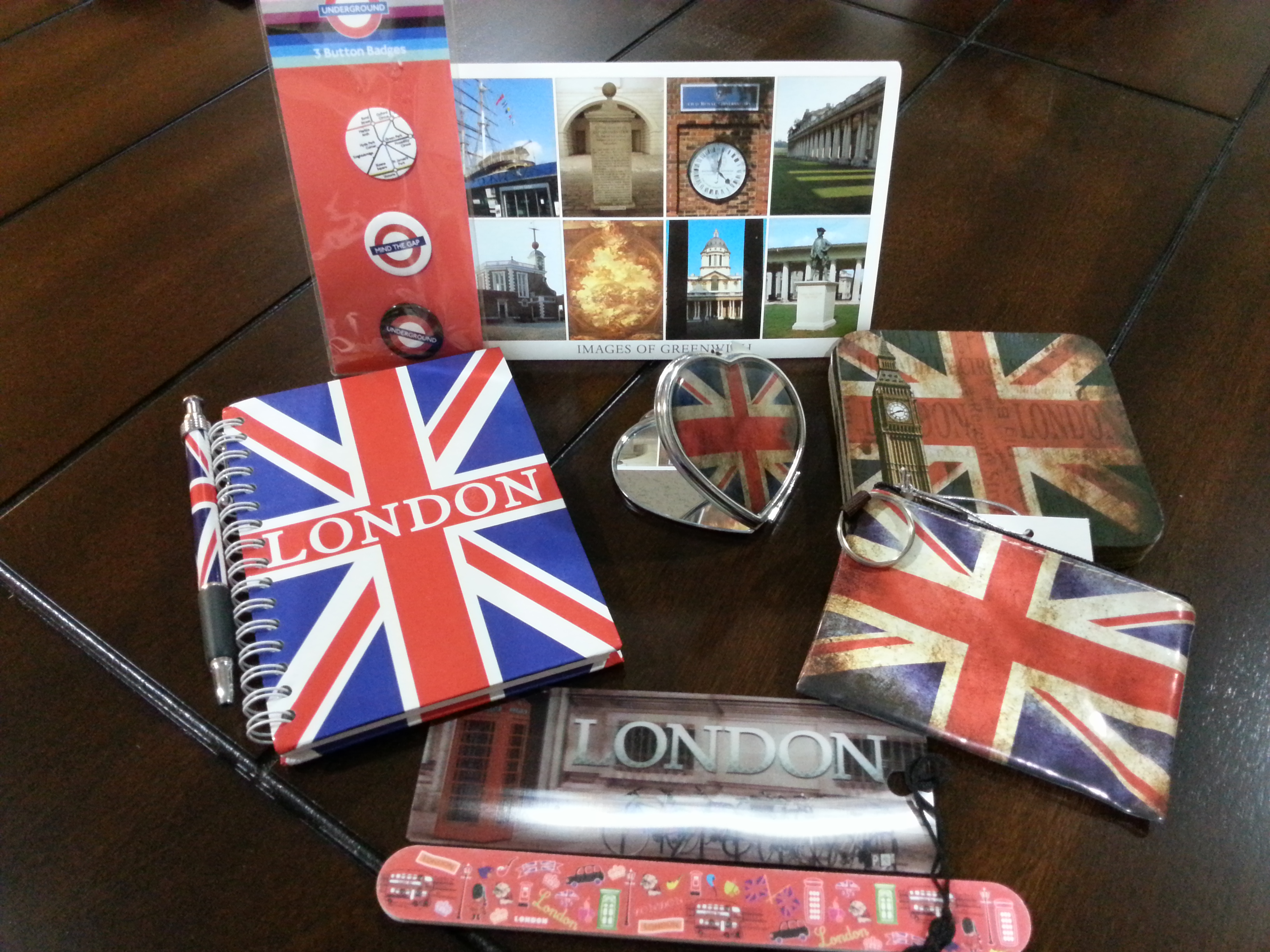 Bottom:  London Bookmark, coin purse and London scene nail file
