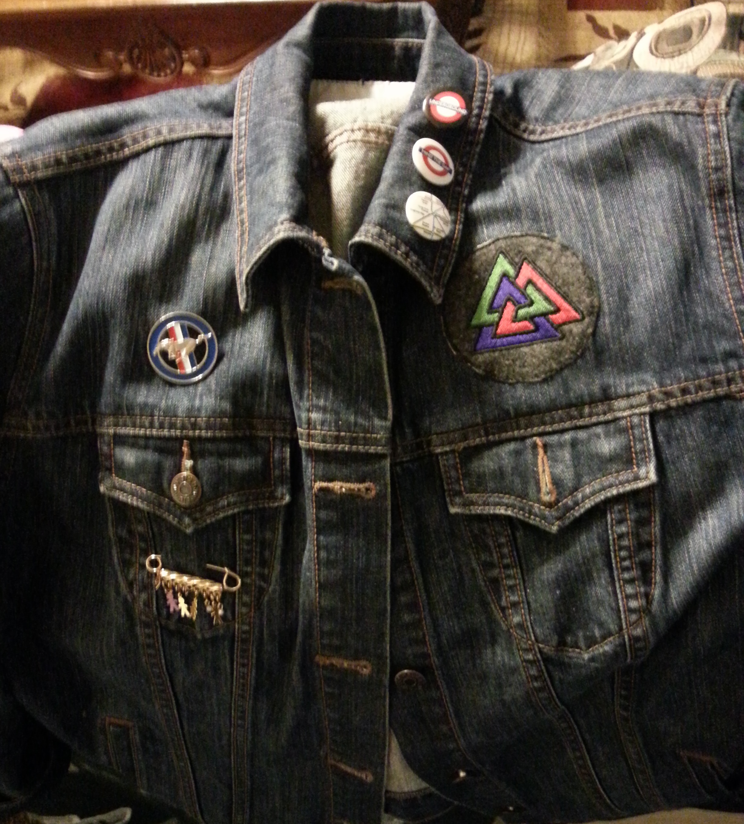 Top:  Three London Underground buttons that went on my jean jacket promptly and a Postcard.